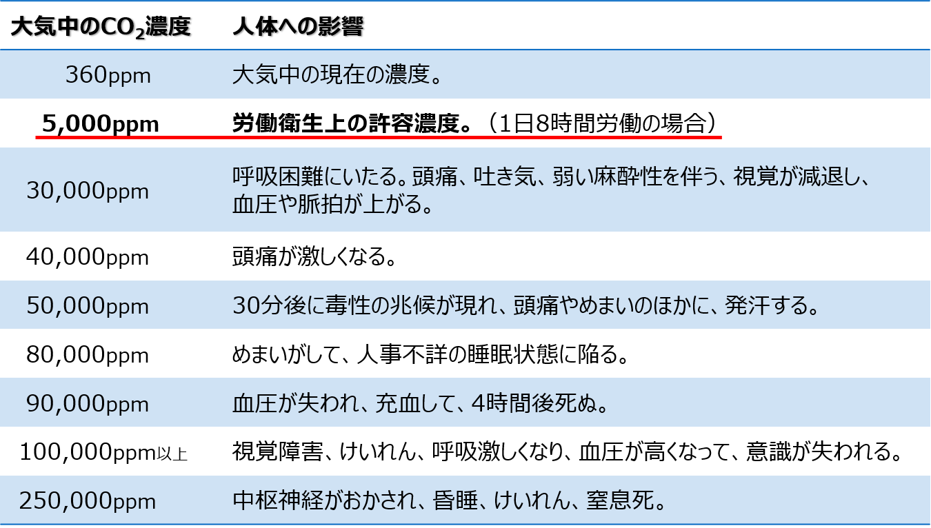 吸入気の炭酸ガス許容濃度は如何ほどか?